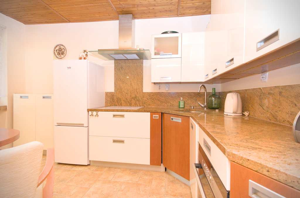 - kuchnia ok. 9 m2, z meblami, wyposażona w niezbędny sprzęt AGD (m.in. lodówkę, piekarnik, zmywarkę, płytę itp.),