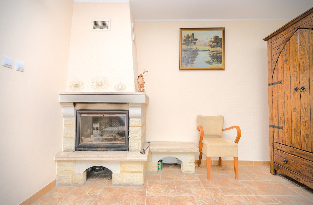 Do dyspozycji mamy także sporą piwnicę z pomieszczeniami do dowolnej aranżacji (w jednym z nich znajduje się kotłownia z instalacją ogrzewania olejowego - kocioł dwufunkcyjny). Dodatkowym źródłem ogrzewania jest kominek, który znajduje się w salonie.