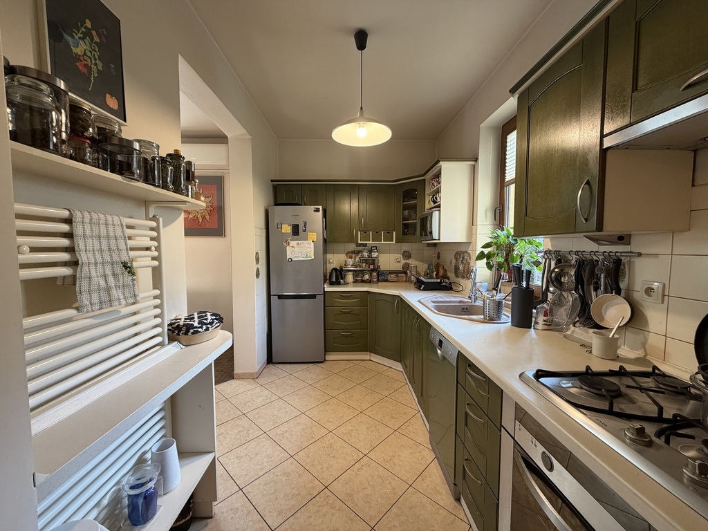 - osobną kuchnię z oknem z drewnianymi meblami w zabudowie (wejście zarówno z korytarza jak i z salonu),