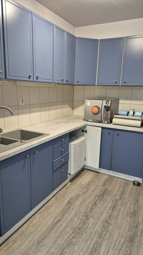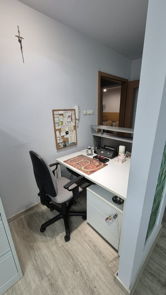 hol, obok jest poczekalnia z niej wejscie do pokoju socjalnego. WC dla pacjentów. Recepcja a za nią 2 gabinety. W głębi lokalu jest aneks kuchenny i łazienka z prysznicem. Niski czynsz ok 450 zł z funduszem remontowym, ogrzewaniem itp do dodatkowe zalety. Okna PCV, rolety, ściany w gładziach malowane, na podłogach są panele i płytki. Oferta również do wynajęcia za 5000 zł + opłaty. Klucze w biurze, oferta na wyłączność. Zapraszam