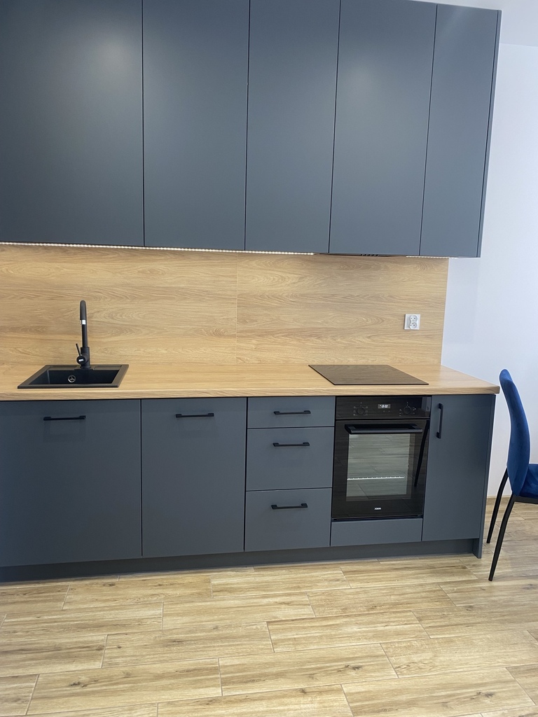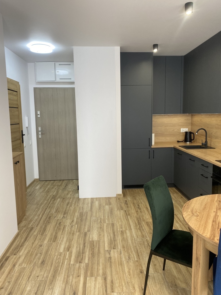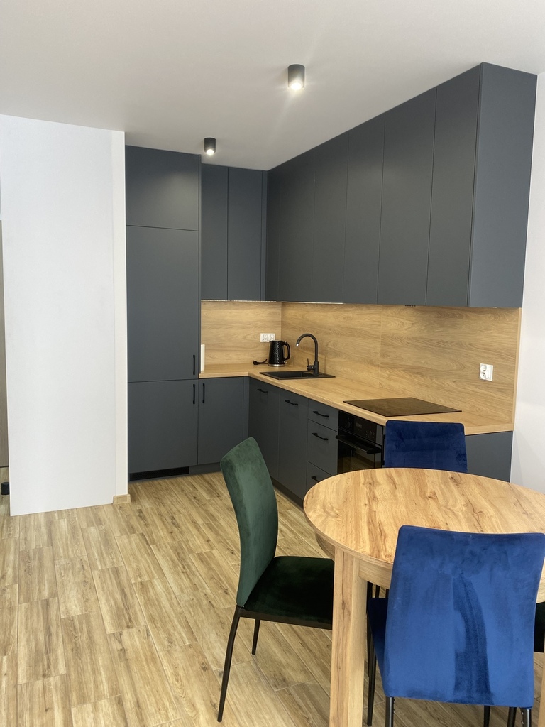 Lokal jest w pełni umeblowany i wyposażony – gotowy do zamieszkania od zaraz. Nowoczesna kuchnia z zabudową oraz sprzętem AGD, stylowe wykończenie i spójna kolorystyka wnętrz tworzą komfortową przestrzeń do życia.