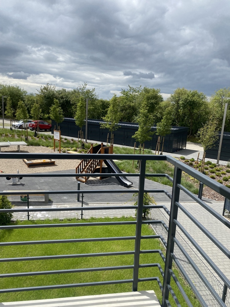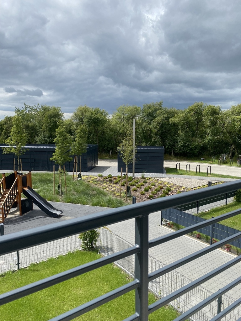 • balkonu z widokiem na zieleń,