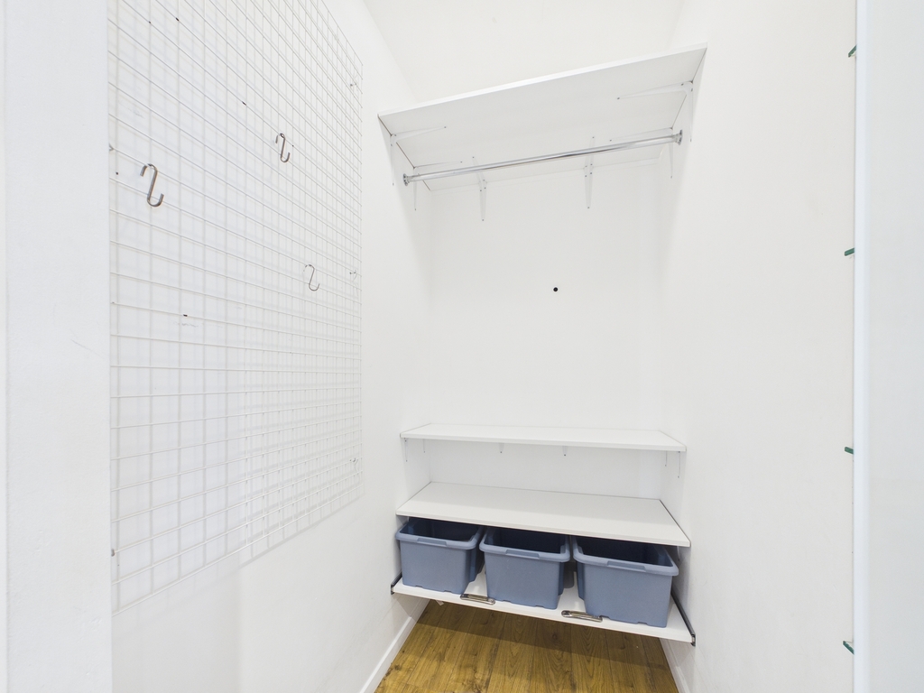 Mieszkanie zostało wykończone z materiałów wysokiej jakości, a w kuchni znajdują się funkcjonalne meble w zabudowie.