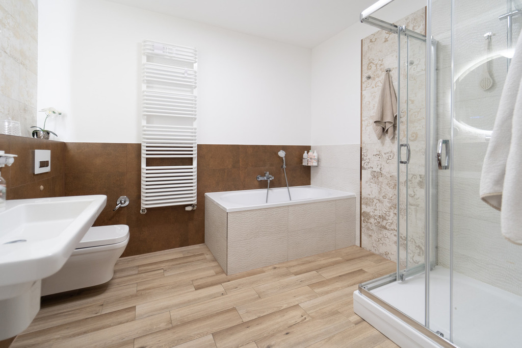 - łazienka z wanną oraz prysznicem,
