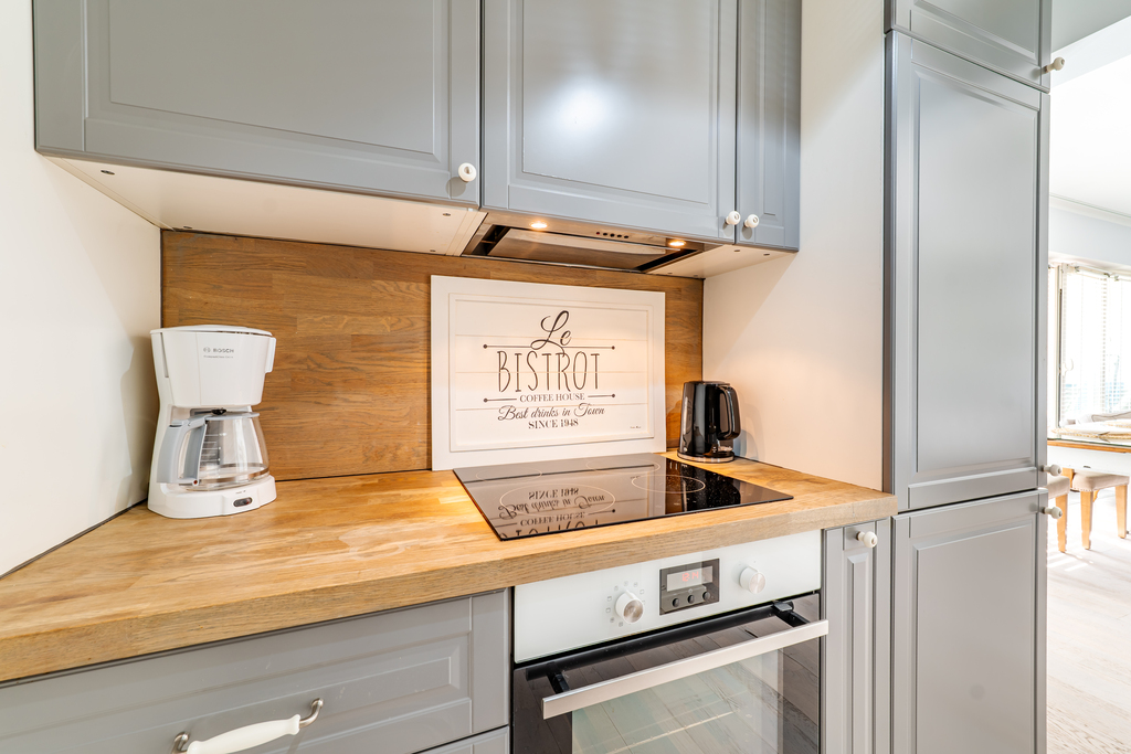 Apartament został wykończony w wysokim standardzie, z wykorzystaniem materiałów wysokiej jakości oraz dbałością o detale, co podkreśla jego nowoczesny i elegancki charakter.