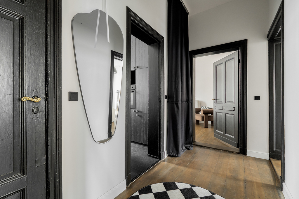 Duma mieszkania – stolarka: Największym skarbem mieszkania jest oryginalna stolarka drzwiowa, zachowana w wyjątkowej, historycznej estetyce. Drzwi zdobią klasyczne korony (gzymsy), które nadają wnętrzu unikalnej wyniosłości. Całość dopełniają oryginalne klamki, które przetrwały próbę czasu.