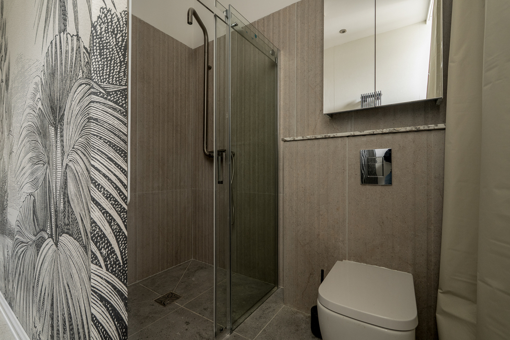 Kuchnia i Łazienka: Nowa kuchnia w zabudowie na wymiar z nowym sprzętem AGD oraz łazienka z nowoczesnym prysznicem i odpływem liniowym to połączenie funkcjonalności z elegancją.