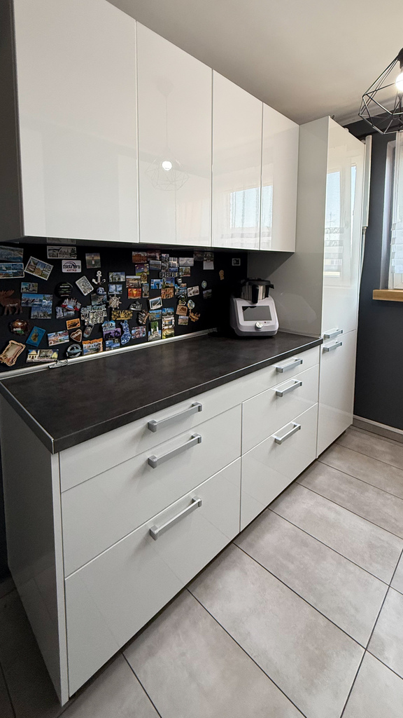 - Kompletną zabudowę kuchenną wraz ze sprzętem AGD (zmywarka 60-tka, piekarnik elektryczny, płyta gazowa, lodówka, pochłaniacz).