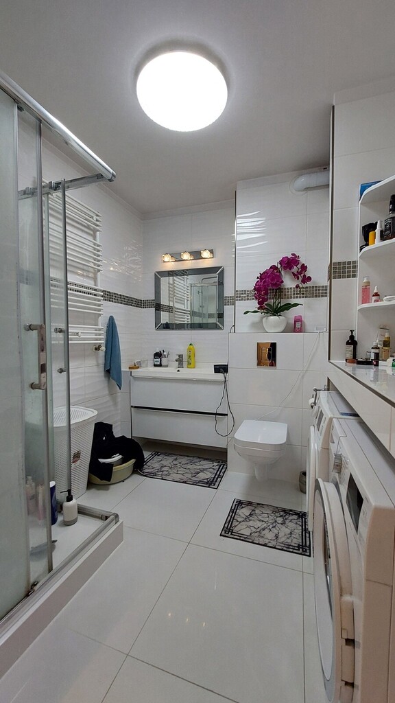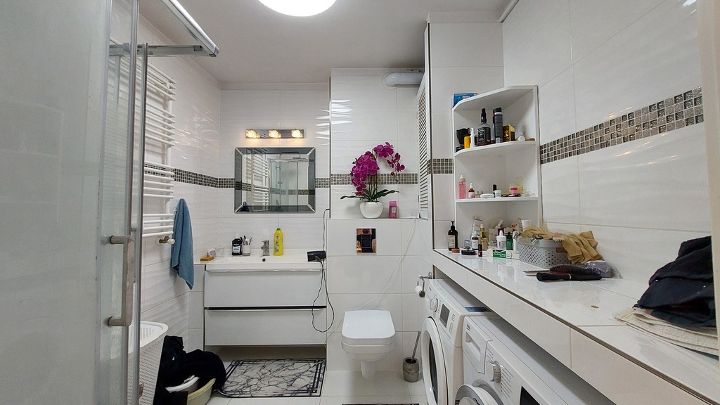 - łazienka z kabiną prysznicową, w nowoczesnej glazurze i terakocie,