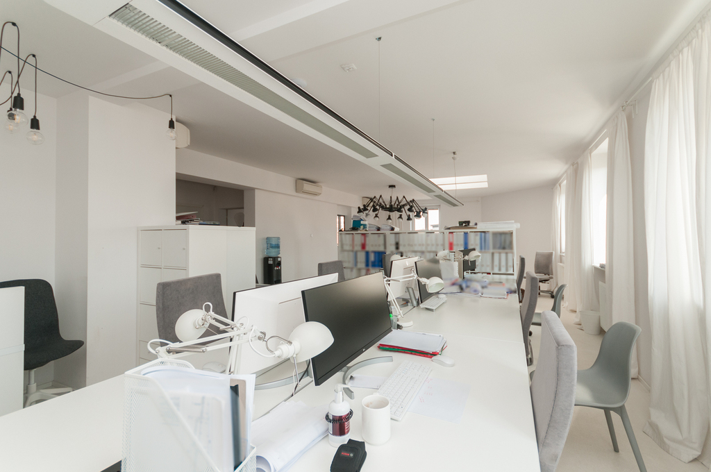 * dwa niezależne pomieszczenia typu gabinet, jedno duże pomieszczenie typu open space (kiedyś to pomieszczenie było podzielone ściankami działowymi na kilka pomieszczeń),