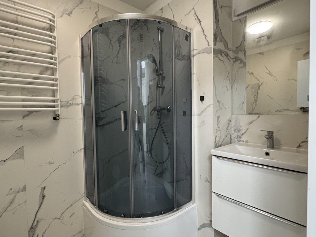 • Układ: pokój dzienny z aneksem kuchennym oraz łazienka z kabiną prysznicową