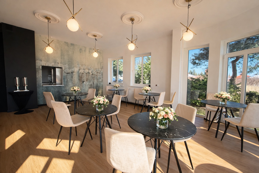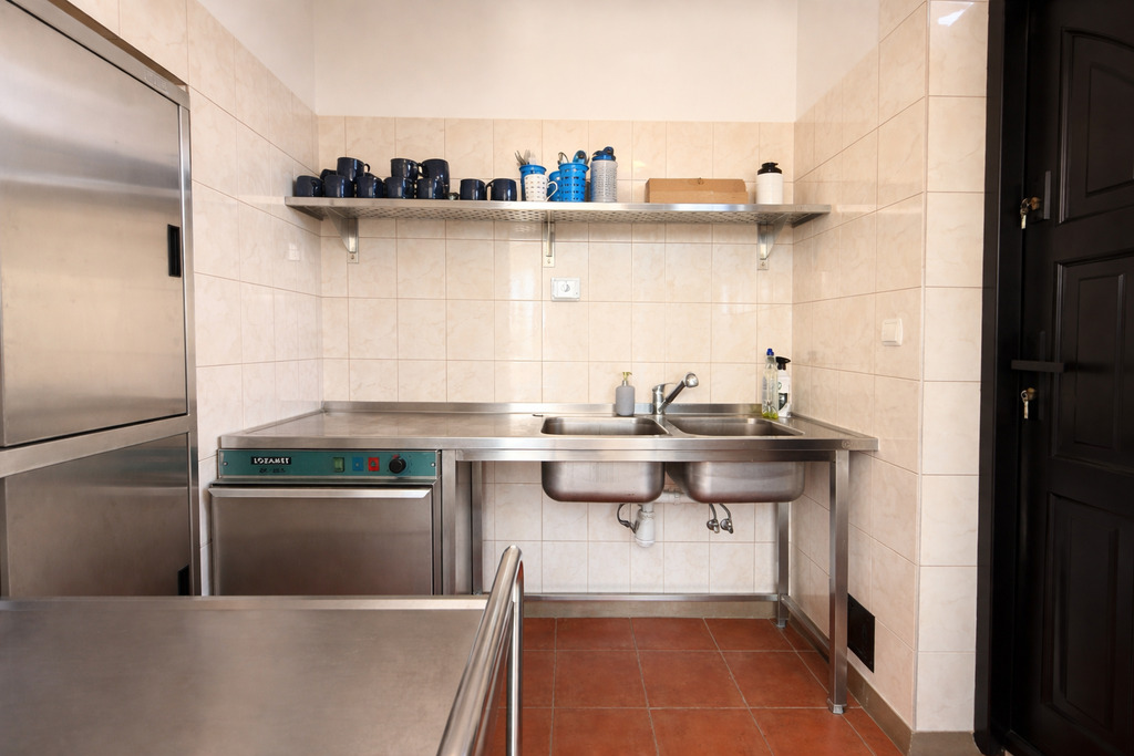 - W pełni funkcjonalne zaplecze kuchenne: wyposażona kuchnia , wydawka , zmywak , pomieszczenie gospodarcze