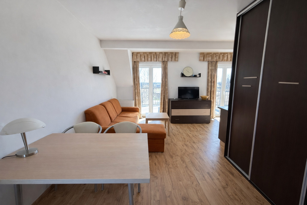 - Niezależne mieszkanie , w skład którego wchodzi: salon z aneksem kuchennym , dwie oddzielne sypialnie , łazienka z wanną