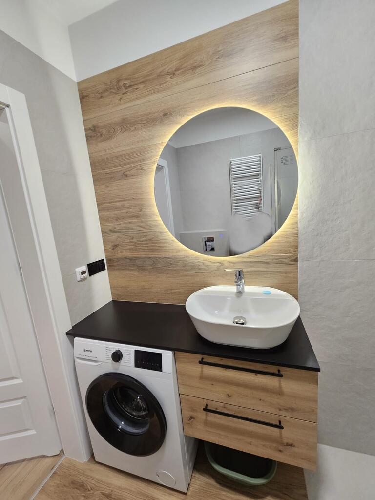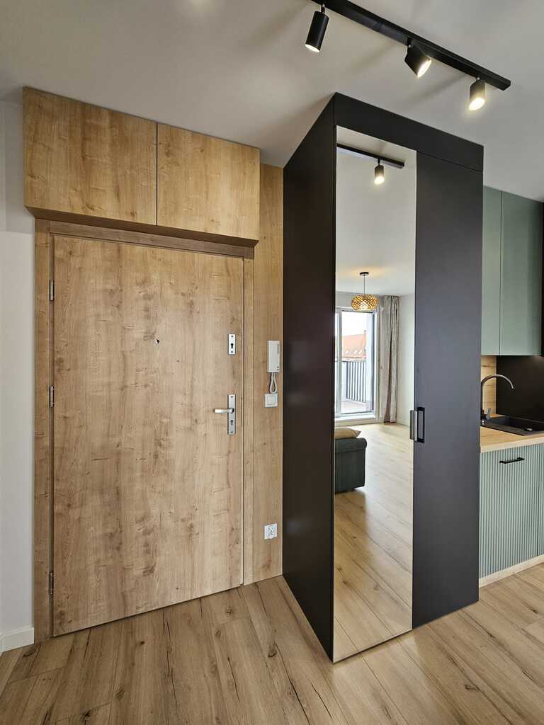 Na nieruchomość składa się pokój połączony z kuchnią i otwarty na przedpokój z wyjściem na taras ok.10m2, sypialnia z szafą i przestronna łazienka. Kuchnia w formie aneksu kuchennego umeblowana z pełnym wyposażeniem agd wysokiej jakości (lodówko-zamrażarka, zmywarka, piekarnik z płytą elektryczną). Sofa rozkładana z funkcją spania. Łazienka nowocześnie wykończona, wyposażona w kabinę prysznicową, wc, umywalkę oraz pralkę. Z obu pokoi wyjście na taras.