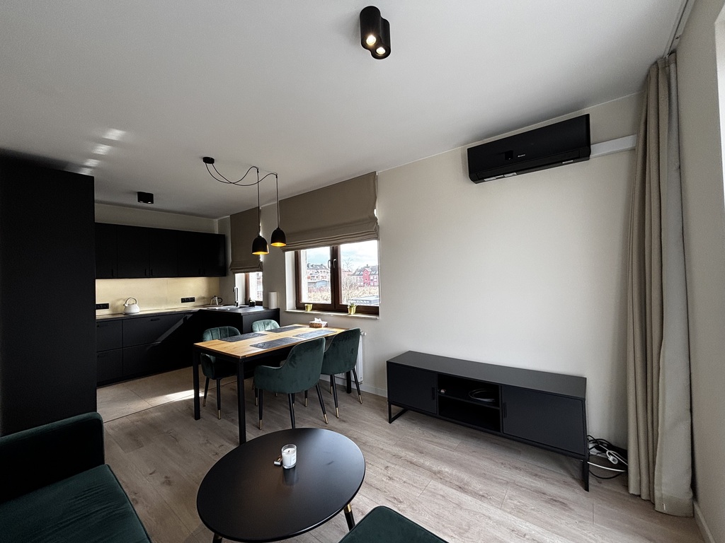 W pokoju dziennym klimatyzator.