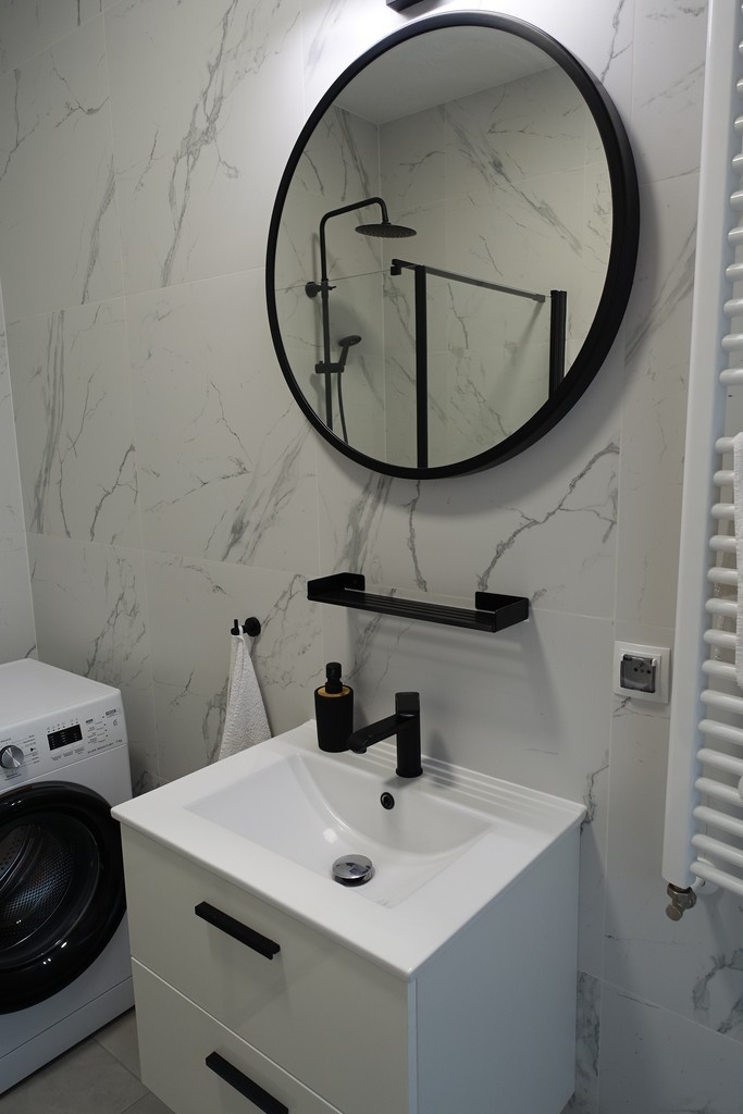 Powierzchnia apartamentu: 27,92 m2. Salon z kuchnią o powierzchni 23,5 m2, pozostałą część powierzchni zajmuje łazienka - 4,6 m2.