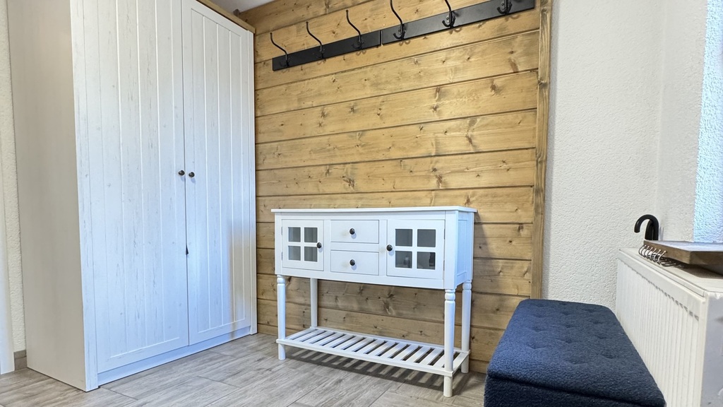 Wejście do domu przez przestronny wiatrołap — praktyczny i estetyczny bufor między światem zewnętrznym a wnętrzem.