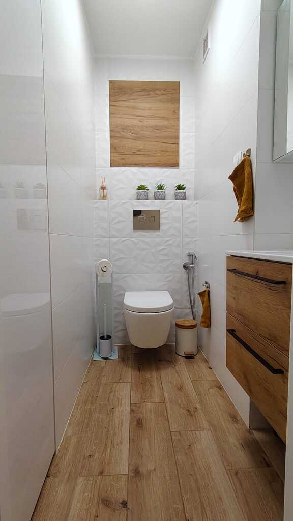 Łazienka z wanną oraz osobna toaleta z umywalką - w nowej glazurze i terakocie.