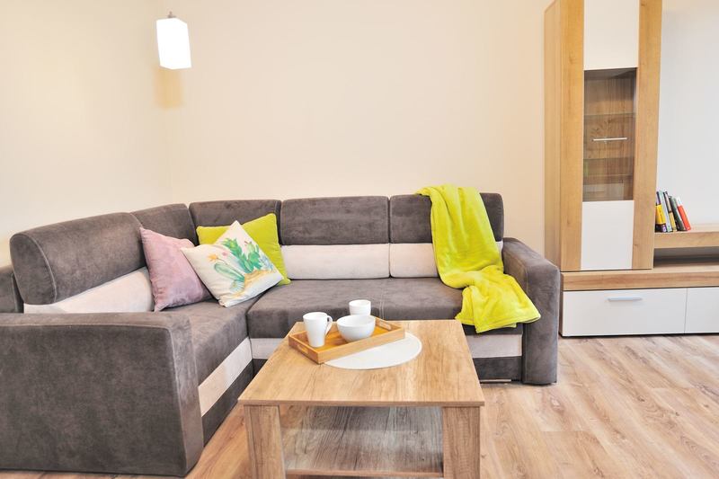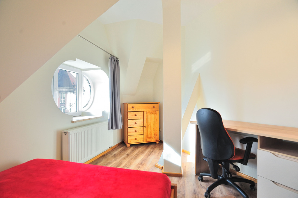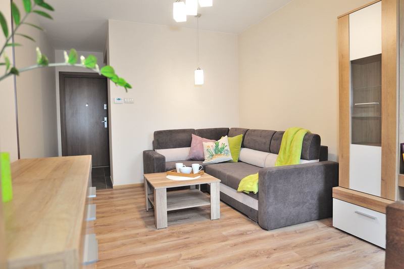 Mieszkanie, składa się z 2 pokoi, oddzielnej, widnej kuchni, łazienki z wc i kabiny prysznicowej, przedpokoju oraz małego pomieszczenia z oknem, mogącego pełnić funkcję do pracy lub miejsce na suszenie prania. Mieszkanie jest w pełni umeblowane.