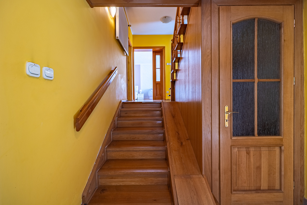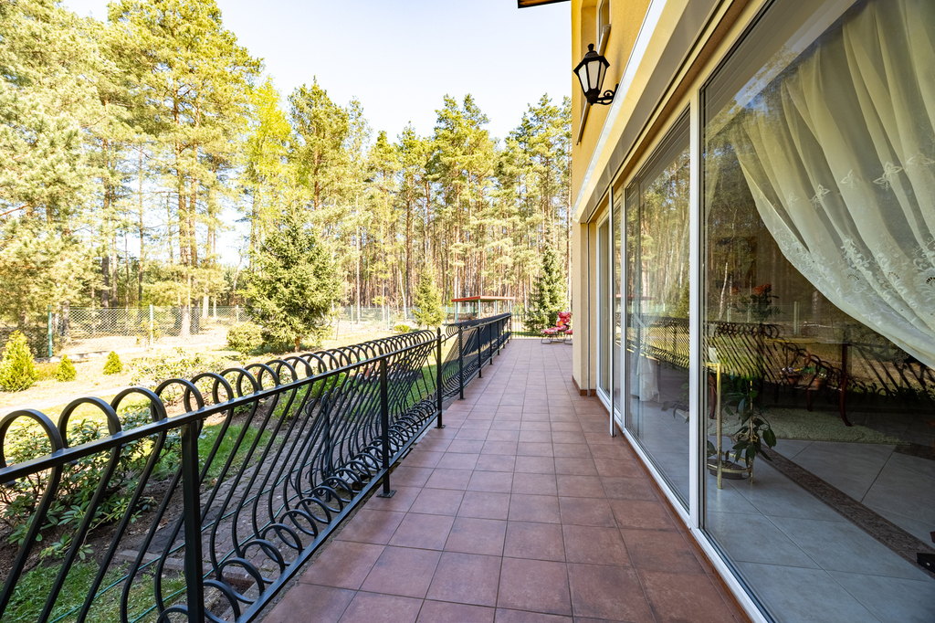 Wnętrza i wykończenieDom wykończony z dbałością o detale, z zastosowaniem wysokiej jakości materiałów. Na podłogach naturalny drewniany parkiet, który nadaje wnętrzom ciepła i elegancji. Drewniane drzwi wewnętrzne podkreślają klasyczny, ponadczasowy charakter przestrzeni.