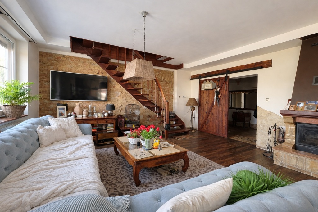 Dwupoziomowe mieszkanie powstało z połączenia dwóch mieszkań o powierzchni 92,32 i 71,62 metrów.