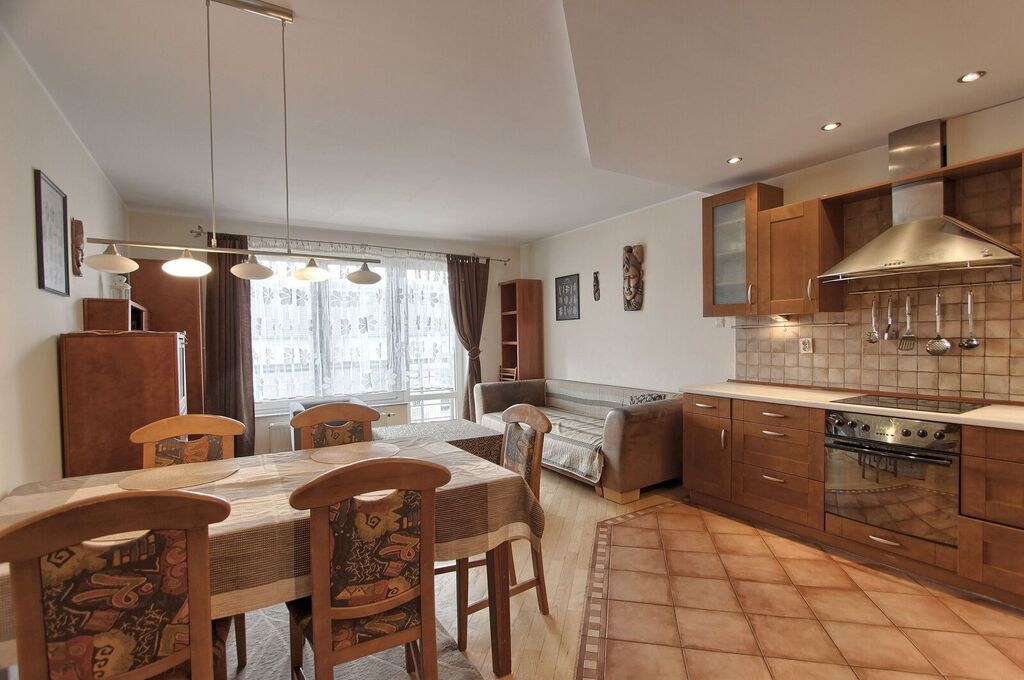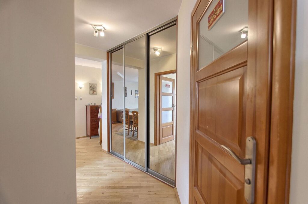 Mieszkanie w pełni umeblowane- tak jak na zdjęciach, na podłogach parkiet drewniany i płytki gresowe.