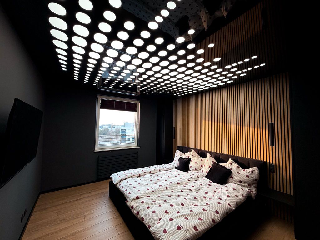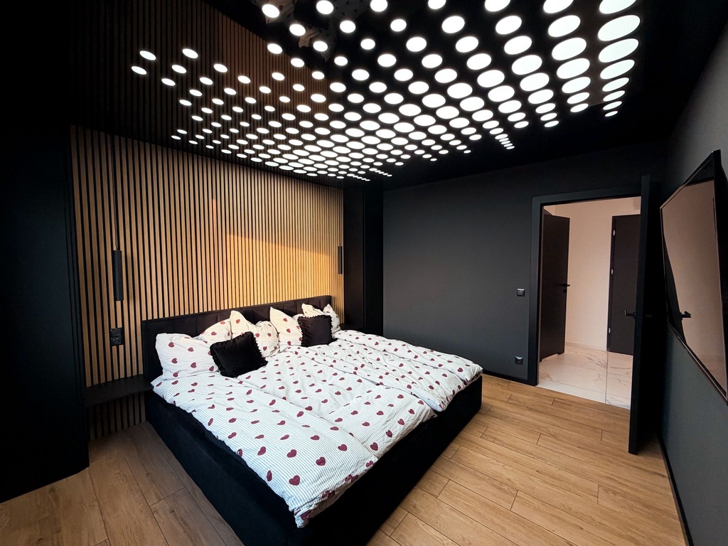 - duża, efektowna sypialnia z klimatycznym sufitem z oświetleniem,