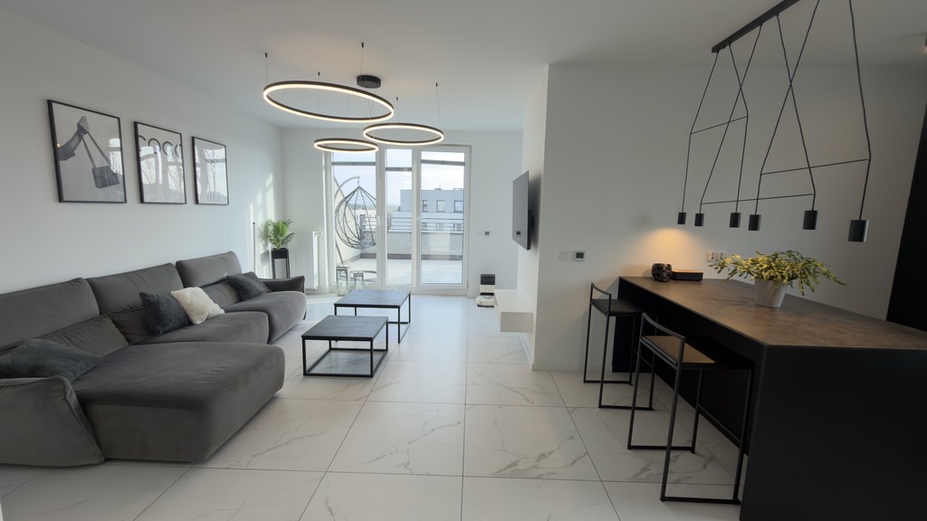 To mieszkanie to idealna propozycja dla osób, które szukają gotowej, dopracowanej przestrzeni w wysokim standardzie, z wyjątkowym tarasem i w świetnej lokalizacji Szczecina.