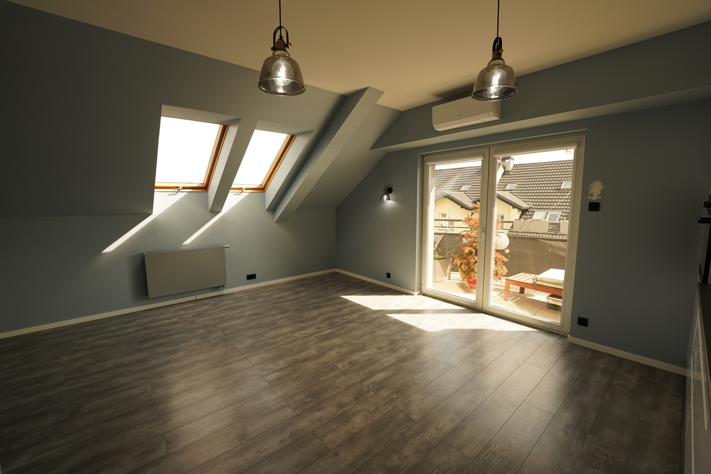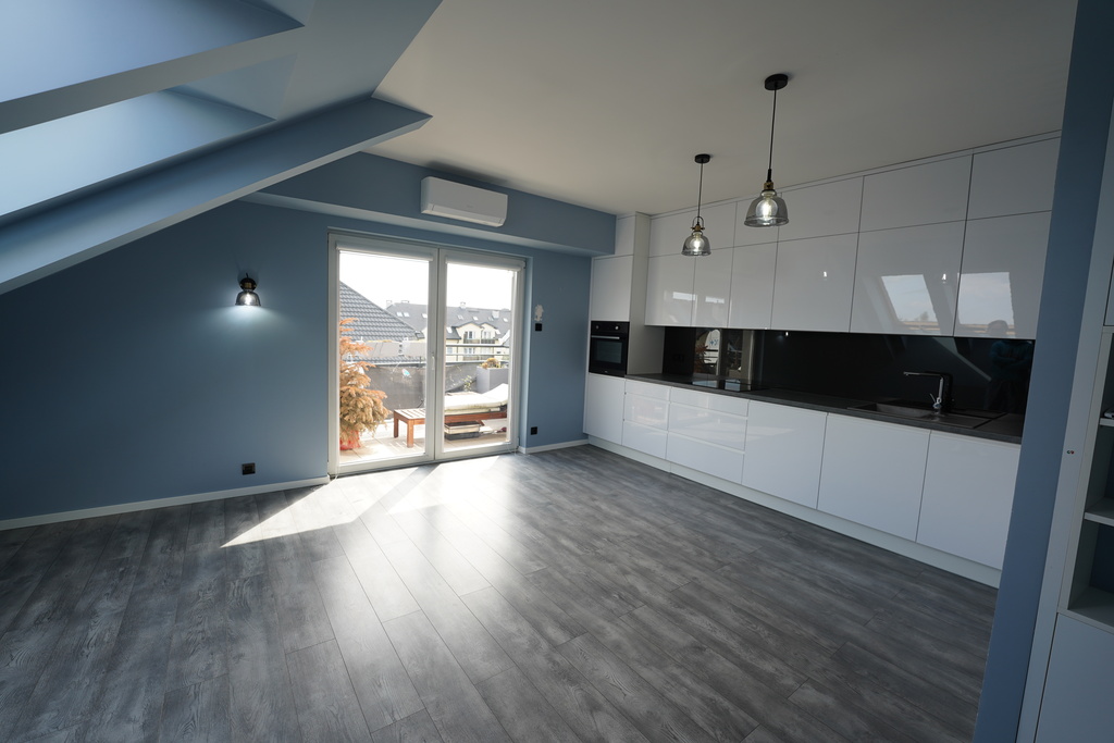 • salon z aneksem kuchennym i wyjściem na balkon