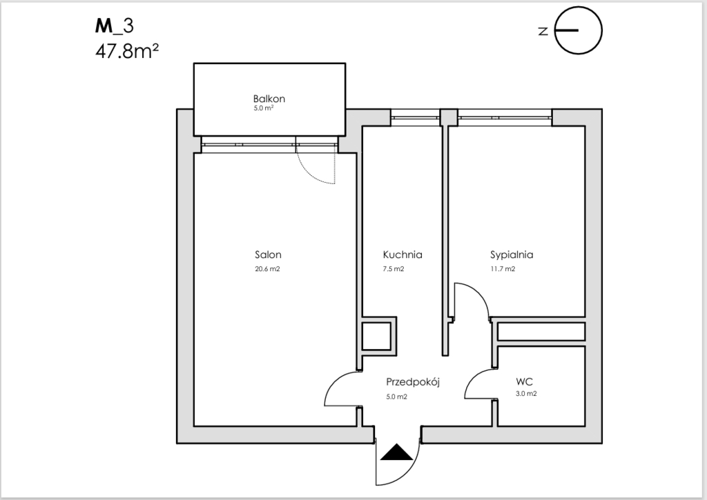 - przestronny salon (ok. 20 m²) z wyjściem na balkon (ok. 5 m²),