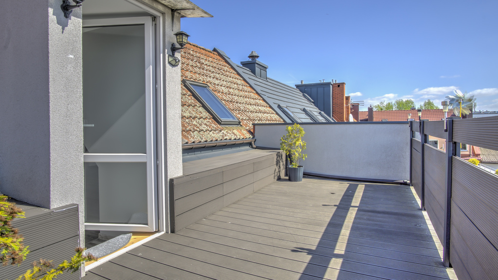 Dodatkowym atutem nieruchomości jest taras, stanowiący idealne miejsce do wypoczynku.