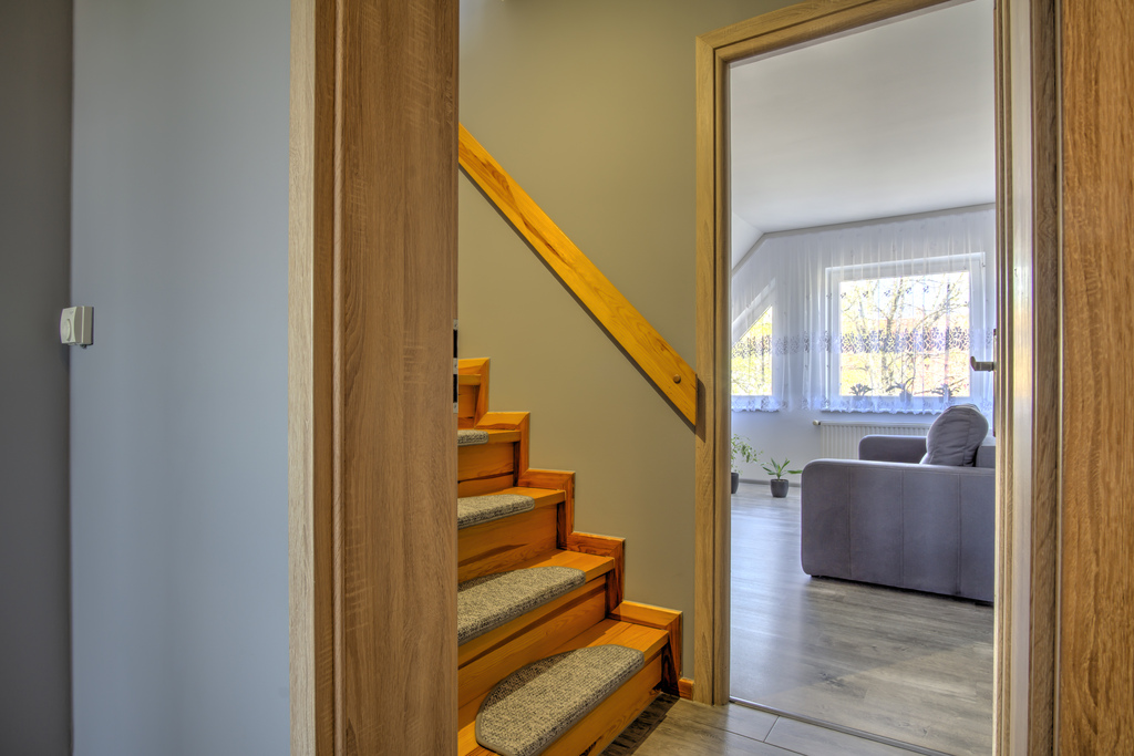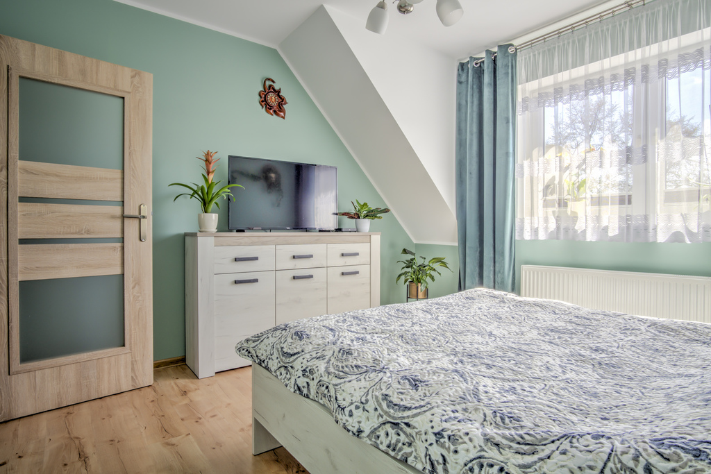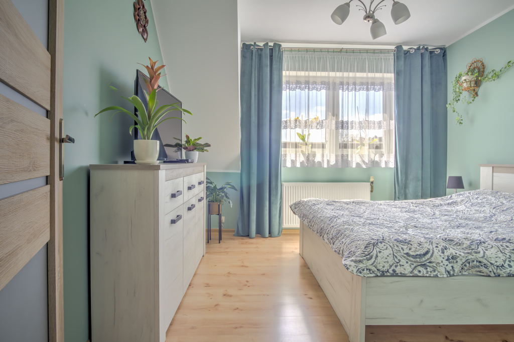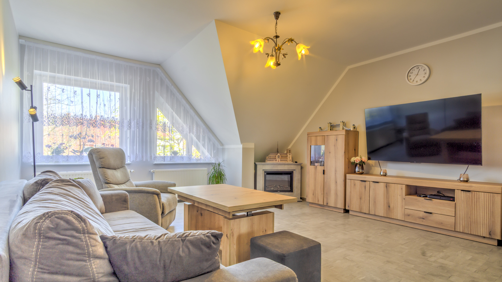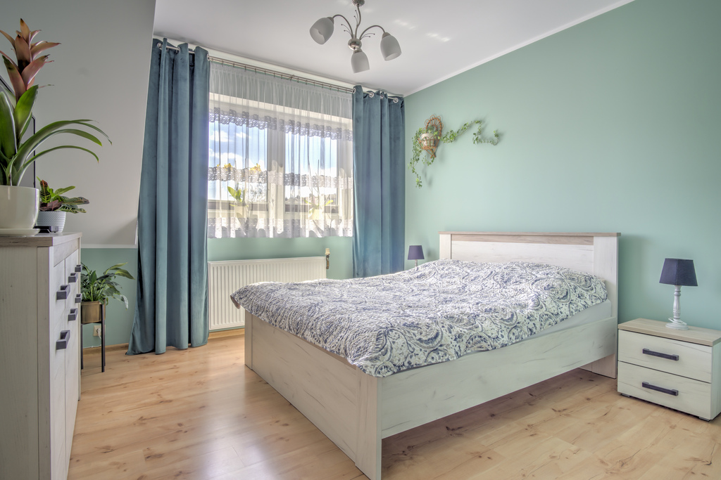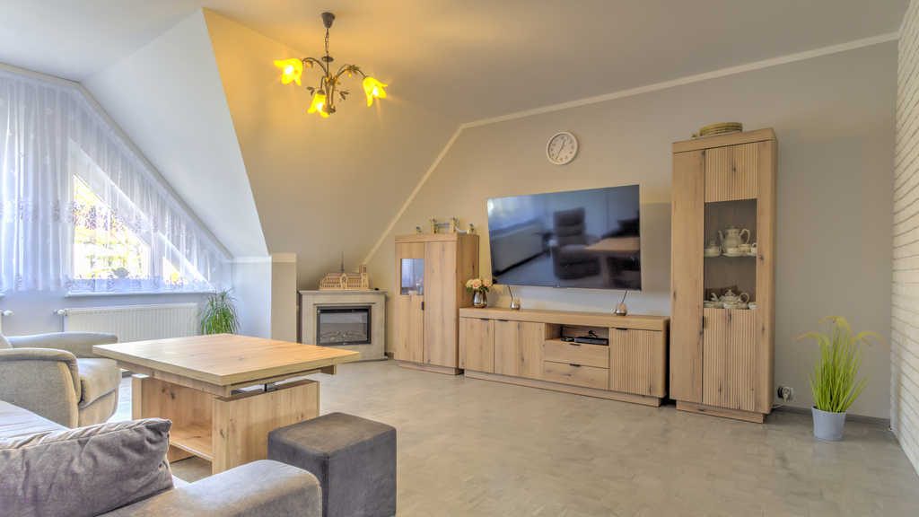 Funkcjonalny układ pomieszczeń rozłożony na dwóch poziomach zapewnia komfort codziennego użytkowania oraz poczucie przestrzeni.