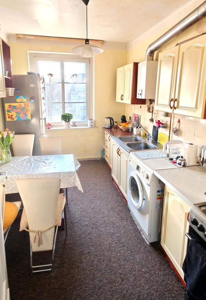 W skład mieszkania wchodzą: 3 pokoje (jeden przejściowy), osobna kuchnia, łaziekna z oknem, przedpokój oraz do dyspozycji piwnica.
