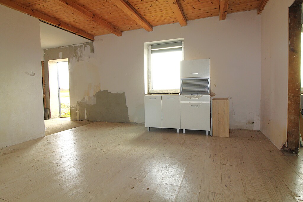 - Salon z aneksem kuchennym (serce domu z możliwością montażu kominka!).