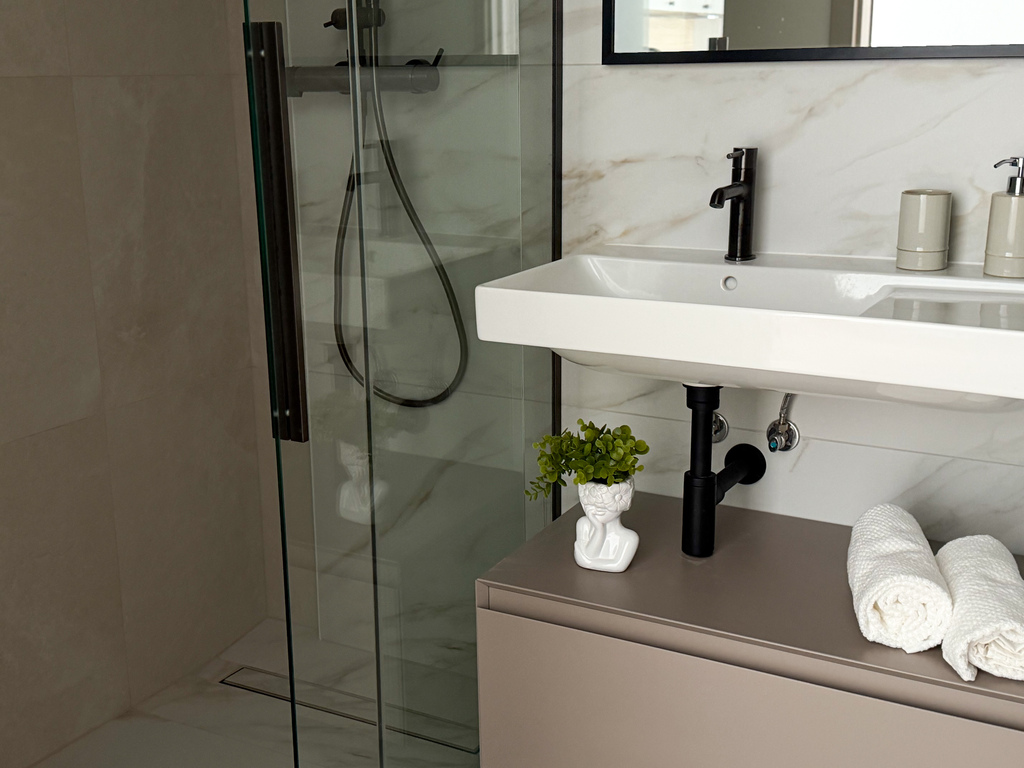 Mieszkanie zostało wykończone z doskonałym wyczuciem stylu i dbałością o detale. Wszystko razem tworzy spójną przestrzeń o wyjątkowym charakterze. To miejsce dla osób ceniących sobie jakość i piękne wnętrza.