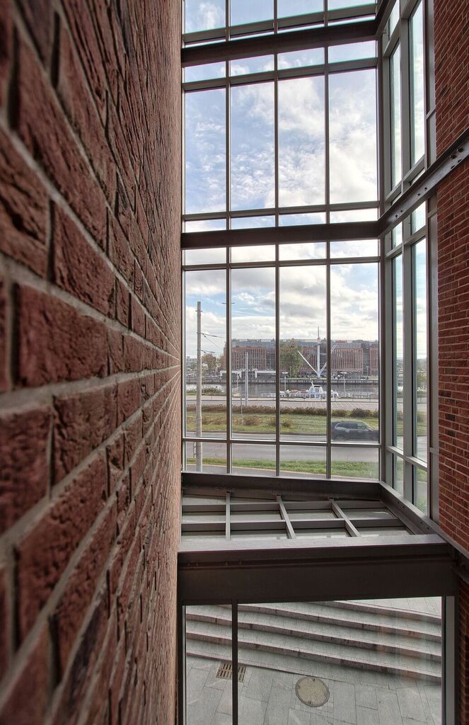 Budynek wykończony jest w wysokim standardzie, posiada monitoring, kontrolę dostępu, klimatyzację, rekuperację, 2 windy oraz 3 klatki schodowe.