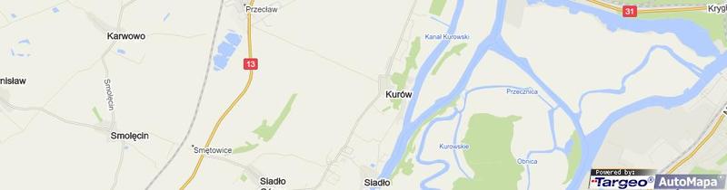 Działka inwestycyjna położona w Kurowie niedaleko rozlewiska Odry o powierzchni 2,8 ha w kształcie litery "L" dłuższa część o wymiarach ok. 200 m na 60 m. Na terenie działki (na skraju) rosną przepiękne drzewa (starodrzew).