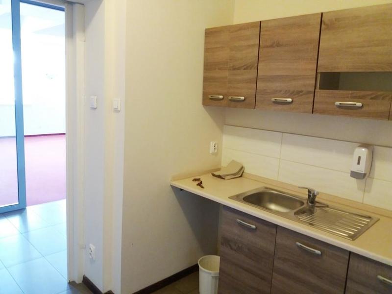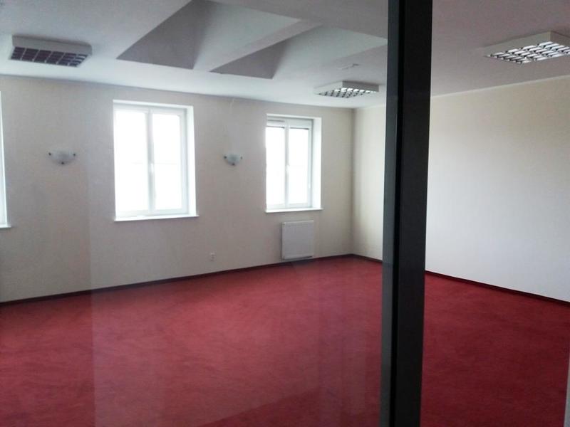 Na powierzchnię 121 m2 składają się 4 pomieszczenia biurowe, zaplecze socjalne, oraz toalety – razem 6 pomieszczeń. Na podłogach wykładzina i kafle, ściany i sufity gładzone, malowane, oświetlenie rastrowe. Łazienka z WC w eleganckim stylu. Okna nowego typu, otwierane, PCV, pomieszczenia są doświetlone także świetlikami w dachu. Pokoje wyposażone w sieć komputerową, wideodomofon, sieć telefoniczną. Do budynku podłączono światłowód. Ogrzewanie i ciepła woda z sieci miejskiej.