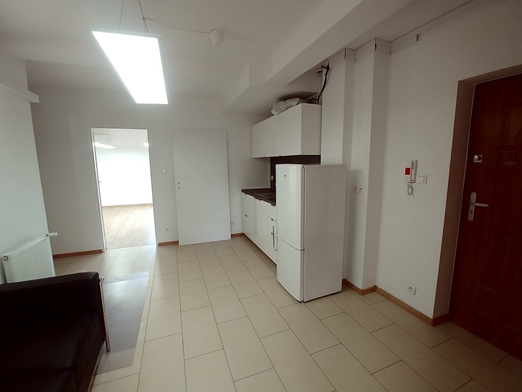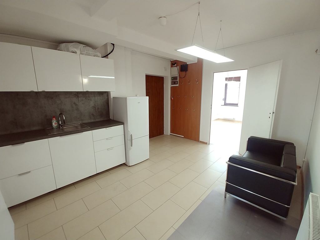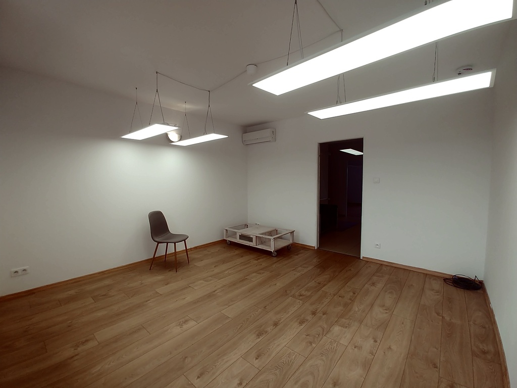 Apartament przekształcony na lokal biurowy. Składa się z dwóch dużych pokoi, socjala z jadalnią oraz łazienki z wc.