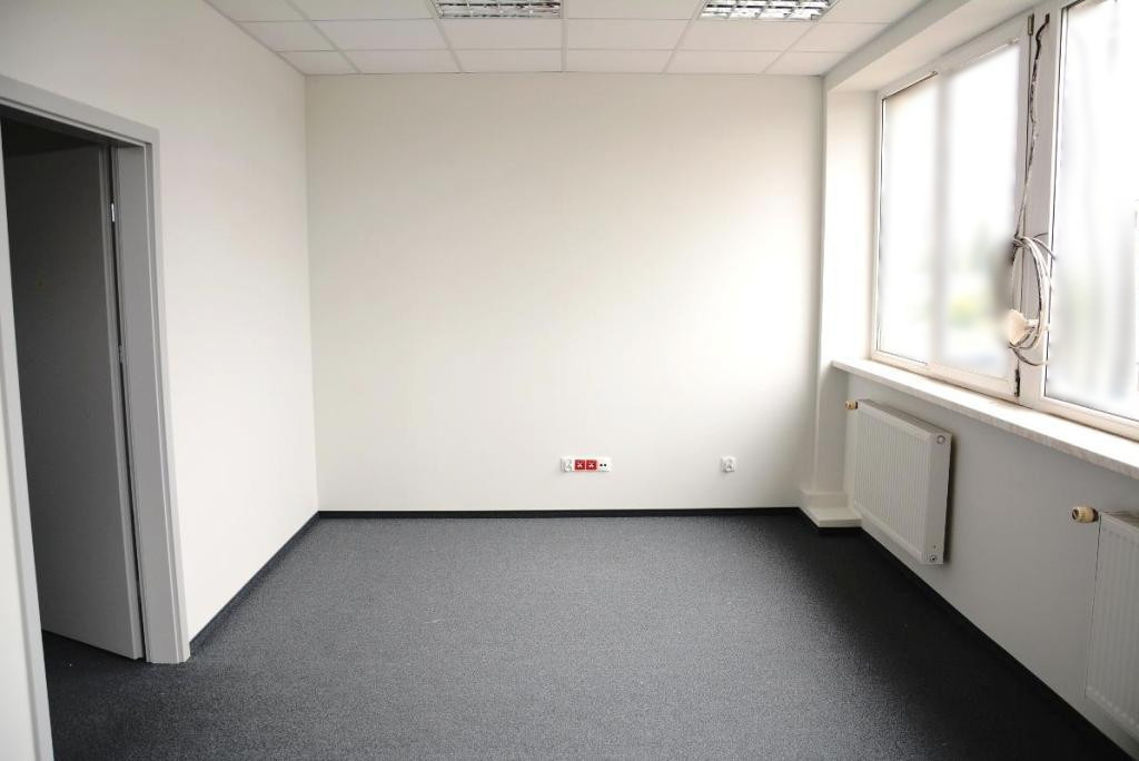 Pokój biurowy wykończony w wysokim standardzie – ściany gładzone, malowane, na podłogach wysokiej klasy wykładzina, rozprowadzona instalacja internetowa, sufit podwieszany, oświetlenie rastrowe, wentylacja, okna PCV.