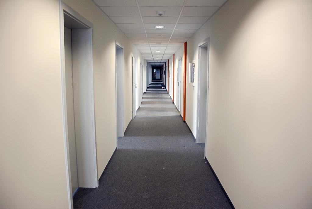 Oświetlenie na korytarzu na czujki ruchu. Toalety męskie i damskie oraz pomieszczenia socjalne na początku i na końcu korytarza – do dyspozycji wszystkich najemców.