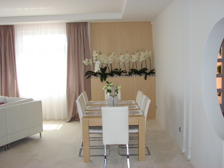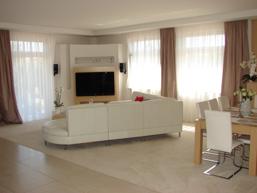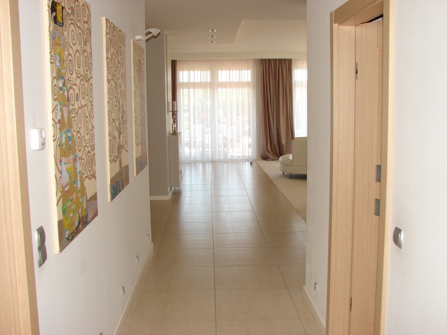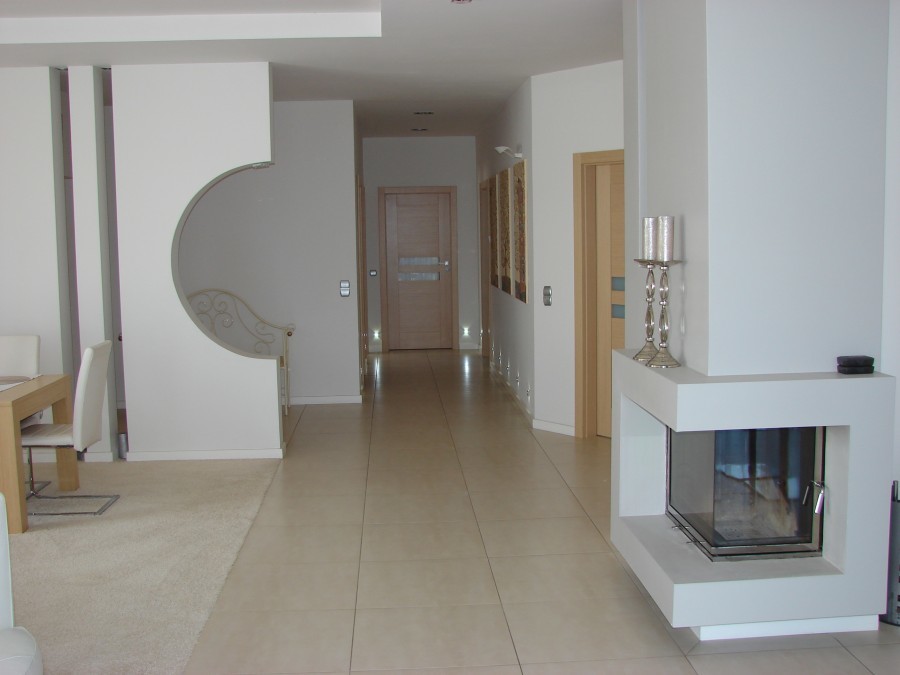 Na powierzchnię składa się duży salon z otwartą kuchnią oraz wyjściem na taras (20m2), 2 przestronne sypialnie, 2 łazienki, gabinet, garderoba, pomieszczenie gospodarcze. W salonie ogrzewanie podłogowe oraz kominek. Dom wykończony z bardzo wysokiej jakości materiałów.