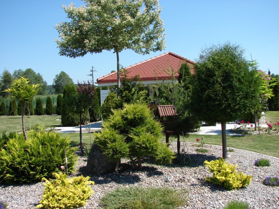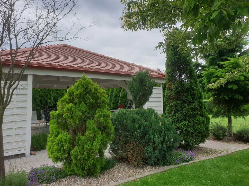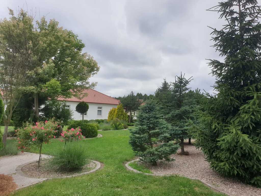 W ogrodzie został zainstalowany system automatycznego nawadniania oraz oświetlenia. Dom został wyposażony w rolety antywłamaniowe oraz system alarmowy. Garaż wolnostojący dwustanowiskowy o pow. 70m2. W garażu WC, nad garażem pomieszczenie gospodarcze.