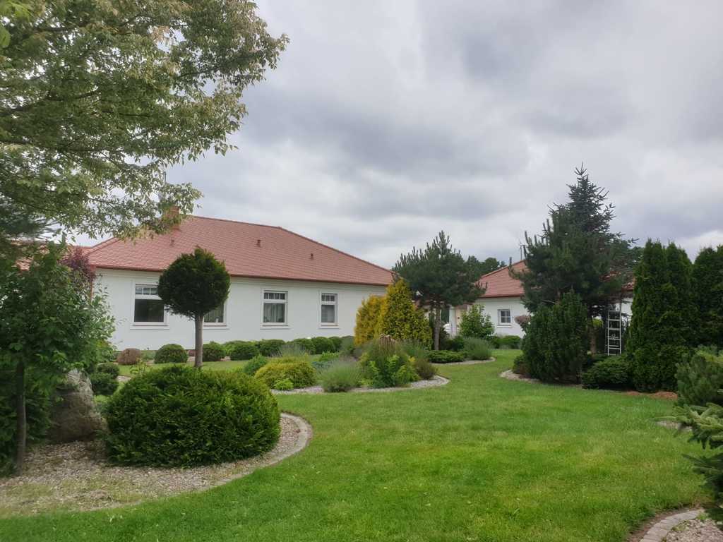 Na sprzedaż komfortowy, atrakcyjny dom wolnostojący, zlokalizowany w środkowej części powiatu polickiego w Dobrej. Dom usytuowany przy cichej, osiedlowej uliczce idealne położenie pozwala na odpoczynek z dala od miejskiego zgiełku w ogrodzie, na tarasie czy altance. Bardzo dobrze skomunikowane z centrum Szczecina. Parterowa rezydencja w stylu dworskim zajmuje pow. całkowitą 184,28m2 na pięknie zagospodarowanej działce 3 450m2 i została wybudowana w 2009r.